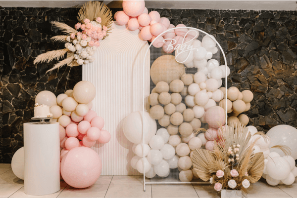 您可以使用繽紛的馬卡龍色系氣球,拼湊氣球牆、製作氣球拱門,或是用氣球搭配Backdrop佈置,增添婚禮佈置的豐富度。