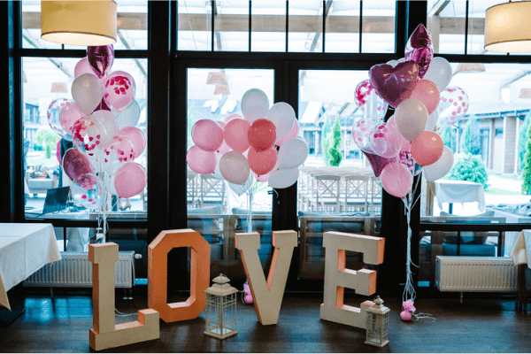 氣球佈置相當快速方便,在準備求婚驚喜分秒必爭的情況下,不妨利用氣球製作愛心、彩虹...等大型裝飾物,打造獨一無二的求婚佈置,讓您與另一半留下美好的回憶。