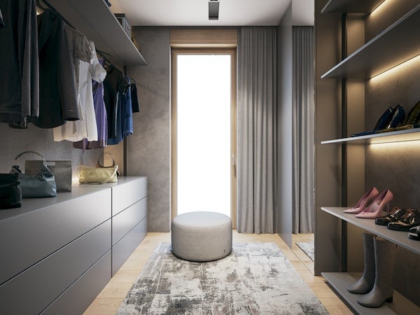衣帽間內建議選擇色溫4,000K的自然光燈泡搭配間接照明,除了能讓光線更柔和,還能避免衣物出現色差影響衣著搭配;層架內部加裝燈條,可以讓您清楚找到衣物,也能讓衣帽間更時尚。