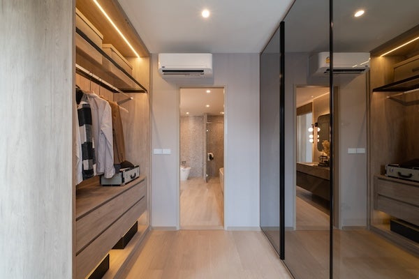 設計衣帽間時應規劃空調、全熱交換機和除濕機的安裝位置,確保衣帽間內空氣流動且濕度保持恆定,避免衣物因環境潮濕而發霉。