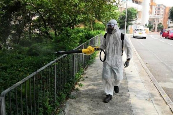 ▲滅蟲公司人員噴灑殘效性藥劑,形成一段時間的保護。