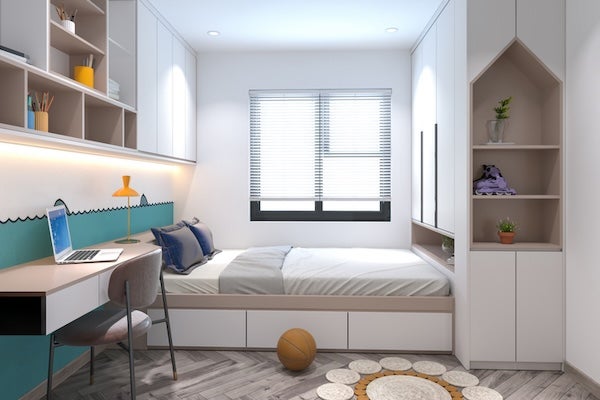 訂造床架不僅能根據房間大小度身訂造,還可以加入床底收納、自定義調整高度等使用機能,或是設計成上床下櫃的碌架床或上下舖,滿足家庭的不同需求。此外,訂造床架也可以結合房間內其他的訂造傢俬,讓空間風格更一致。