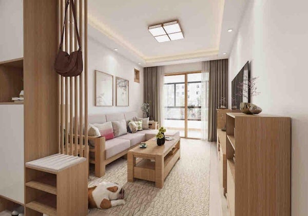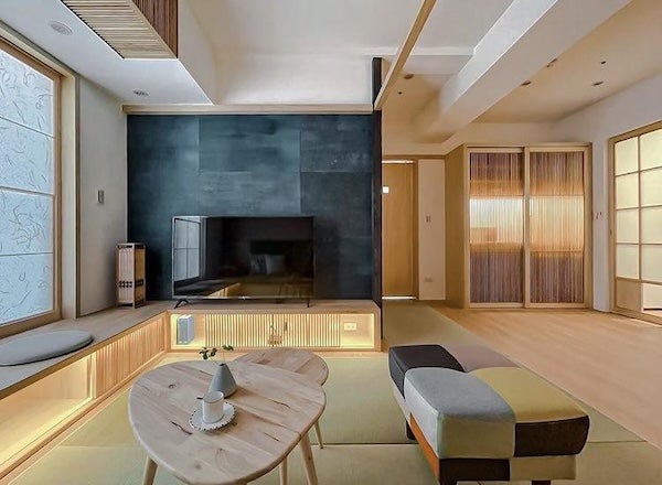 日式禪風深受日本禪宗哲學影響,以追求寧靜生活為宗旨,強調文雅、沉穩、純粹的視覺質感。設計中不會出現華麗裝飾,而是以簡單的直線條為主;選擇大地色、木頭色與草葉綠…等自然色系結合淡雅的淺色調,呈現寧靜質樸的視覺印象;空間中會運用大量的自然與日式元素,包含:木格柵、障子門、竹編裝飾、板岩磚、榻榻米…等,營造充滿傳統日式風情的家居空間。此外,日式禪風亦重視陽台與庭園設計,使居住者在欣賞景致的同時得以沉澱心靈,體會四季更迭的意境美學。