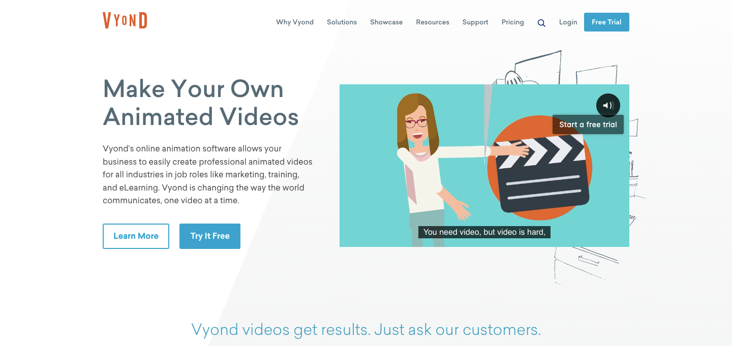 早在2007年便創立的Vyond是一款適合用於企業動畫製作的線上軟體,Vyond提供了許多商業主題的動畫素材庫,並在您製作卡通動畫時協助您整合動畫成品的風格,不需要您在完成後另外對動畫進行修改。除了多樣的模板與方便的編輯功能,Vyond也為了企業用戶簽署了保密條款,確保您公司的資料不會在Vyond上洩漏,正因如此,有許多企業、大學及媒體公司都選擇使用Vyond製作宣傳影片,以確保資料的安全性,對於不會操作軟體的創作者,Vyond也貼心的準備了線上課程供學習。