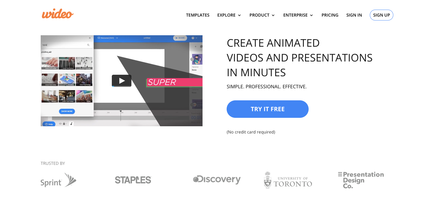 Wideo是一款輕鬆好上手的動畫製作工具,您甚至在手機上透過簡單操控就能設計出一部動畫元素豐富的影片,Wideo提供了多種主題的動畫範本,從數據分析影片、企業宣傳、產品演示、商業影片、房地產介紹影片...等,都能透過Wideo製作。此外,為了許多初次製作動畫的初學者,Wideo也提供了非常多有用的線上課程,解釋了許多的基礎知識。