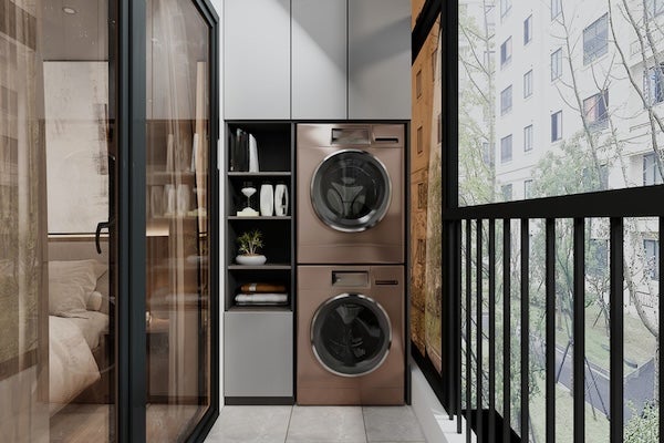 功能露台是指靠近廚房且配有水電管路的露台,通常位於住家後方,因此又稱為「後露台」。功能露台可以擺放設置洗衣機、晾衣桿或小型儲物櫃,便於屋主洗滌與晾曬衣物。