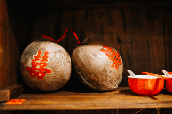 - 正式前往女方家過大禮之前,男方需先拜祭祖先,告知祖先即將與女方家庭訂婚的事宜,表達對祖先的尊敬,象徵家族對這段婚姻的認同。