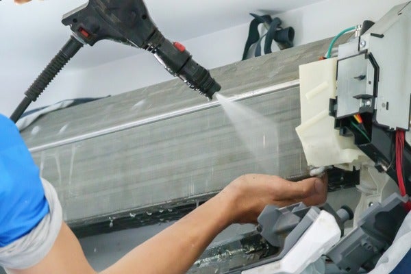 ▲冷氣清洗專家以專業設備清洗冷氣。