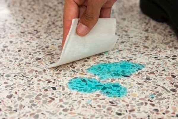 醬油、咖啡、顏料、墨水…等有色液體容易使瓷磚表面與縫隙出現食色現象,此時可以將漂白水或工業用雙氧水倒在汙漬處,並覆蓋一層衛生紙吸收髒污,重複操作多次就可有效淡化或去除染色痕跡。