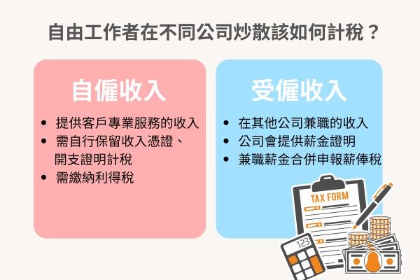 - 薪俸稅:若是自僱人士的收入來自公司,不論是兼職或接案,則需申報薪俸稅。