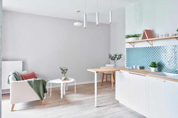 - 使用簡約的裝修風格:簡約俐落的設計風格不會採用複雜的裝飾與繁雜的傢俬擺設,能有效降低視覺的壓迫感,也能確保狹小空間的動線順暢。