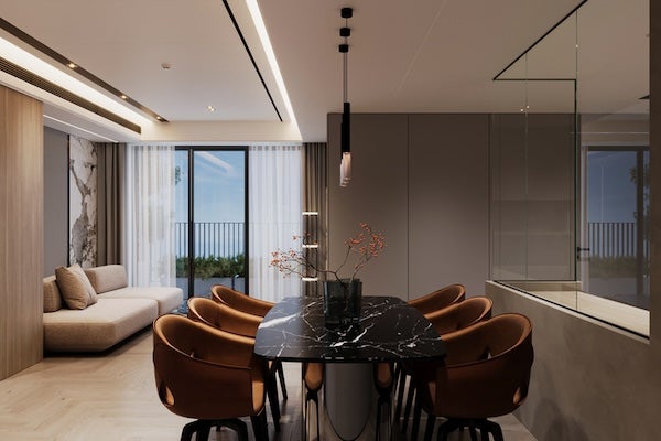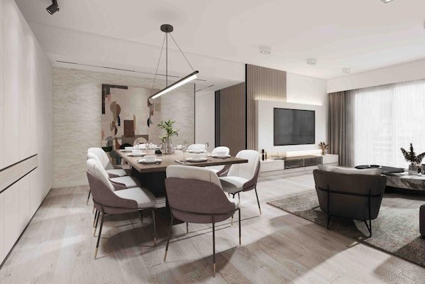 除了大型傢俬,您還可以擺放茶几、屏風或矮櫃…等具有設計感的特色傢俬,成為空間中的亮點,提升客飯廳的視覺層次;此外,還可以搭配抱枕、吊燈、地毯…等軟裝配件,為空間增添更多變化。