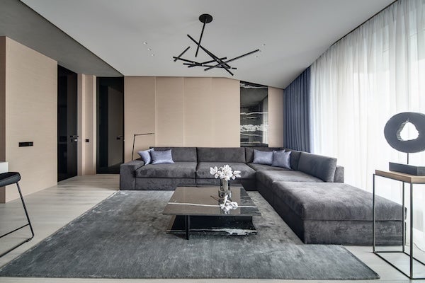 為展現現代風俐落、沈穩的視覺基調,現代風設計多以黑、灰、白為基底色調,且通常僅使用1~2種顏色,並透過單一色調的深淺變化提升視覺層次。另外,也可以透過跳色傢俬增添設計感。