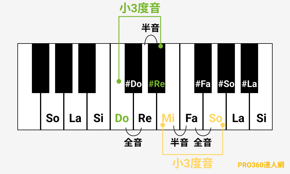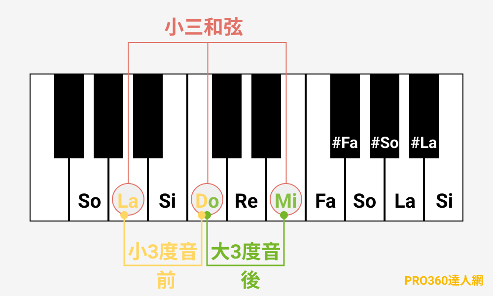 小三和弦則由小3度音在前,大3度音在後組成。