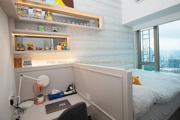 如果細單位樓底較高,可以考慮加建閣樓,閣樓上方作為睡房或儲物空間,下層則作為客廳、書枱或飯廳,不僅可以充分利用高樓底單位的垂直空間,也可以提升蝸居單位的實用性與使用彈性。