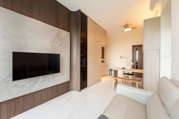 蝸居單位選用白色、米色、淺灰色…等明亮度較高的色彩為主色調可以營造視覺延伸感,不僅能能有效減少壓迫感,搭配充足的自然採光或人工照明,還能提升整體空間感與明亮度,使細單位空間更顯通透。