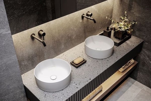 洗手盤材質以陶瓷與石材為主,陶瓷耐磨不易食色但不耐碰撞;石質洗手盤款式多且不易破裂,若選用無縫石還能與枱面同時施作,讓洗手盤的設計風格更一致。除了材質,您還可以視浴室風格選擇臺上盤、臺下盤…等款式。