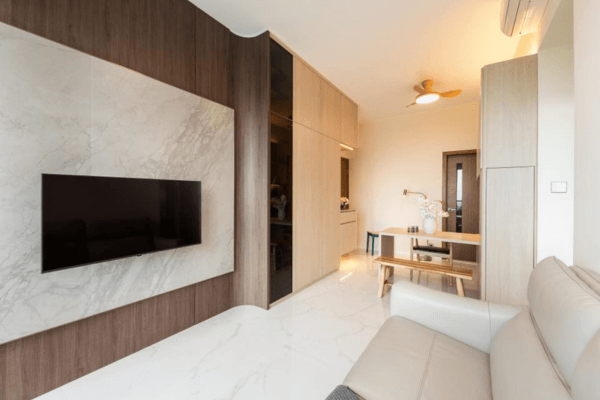 藝術漆批盪屬特殊油漆,搭配精細的手工批盪技巧,可在牆身創造絲絨、花紋或石材...等立體紋理,讓牆面的質感更豐富。藝術漆物料比天然石材價格更平,因此多數人會選擇雲石紋藝術漆,請專業師傅模仿雲石的觸感和紋理,打造高級的氛圍。