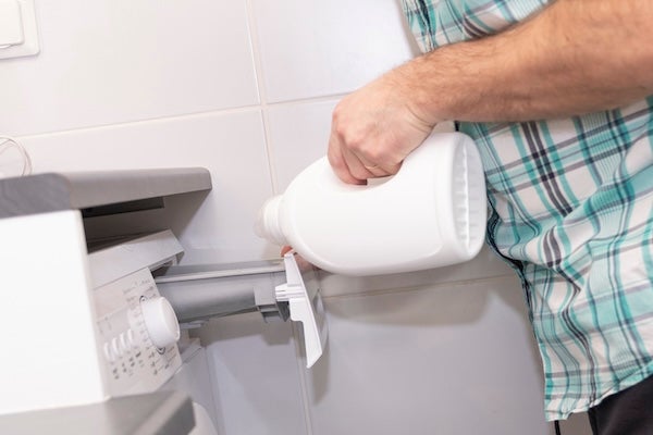 使用過量洗衣劑容易在洗衣槽中沈澱形成皂垢,不僅容易污染衣物,還可能腐蝕零件使洗衣機故障,因此,使用洗衣劑時請務必遵循包裝上的用量標示,避免倒入過多洗衣劑。