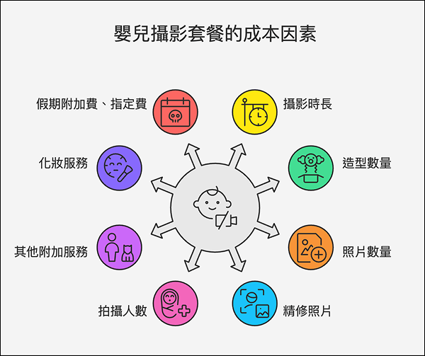 BB相套餐通常為拍攝一位孩童的價格,若您需要拍攝雙胞胎或1位以上的孩童,通常需要支付額外的費用約$600-$1,000/次。