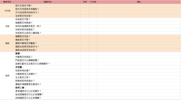 除了上述的必要檢測事項,您也可以下載驗樓清單並根據文件逐步檢查,確保單位內的設備一切正常。